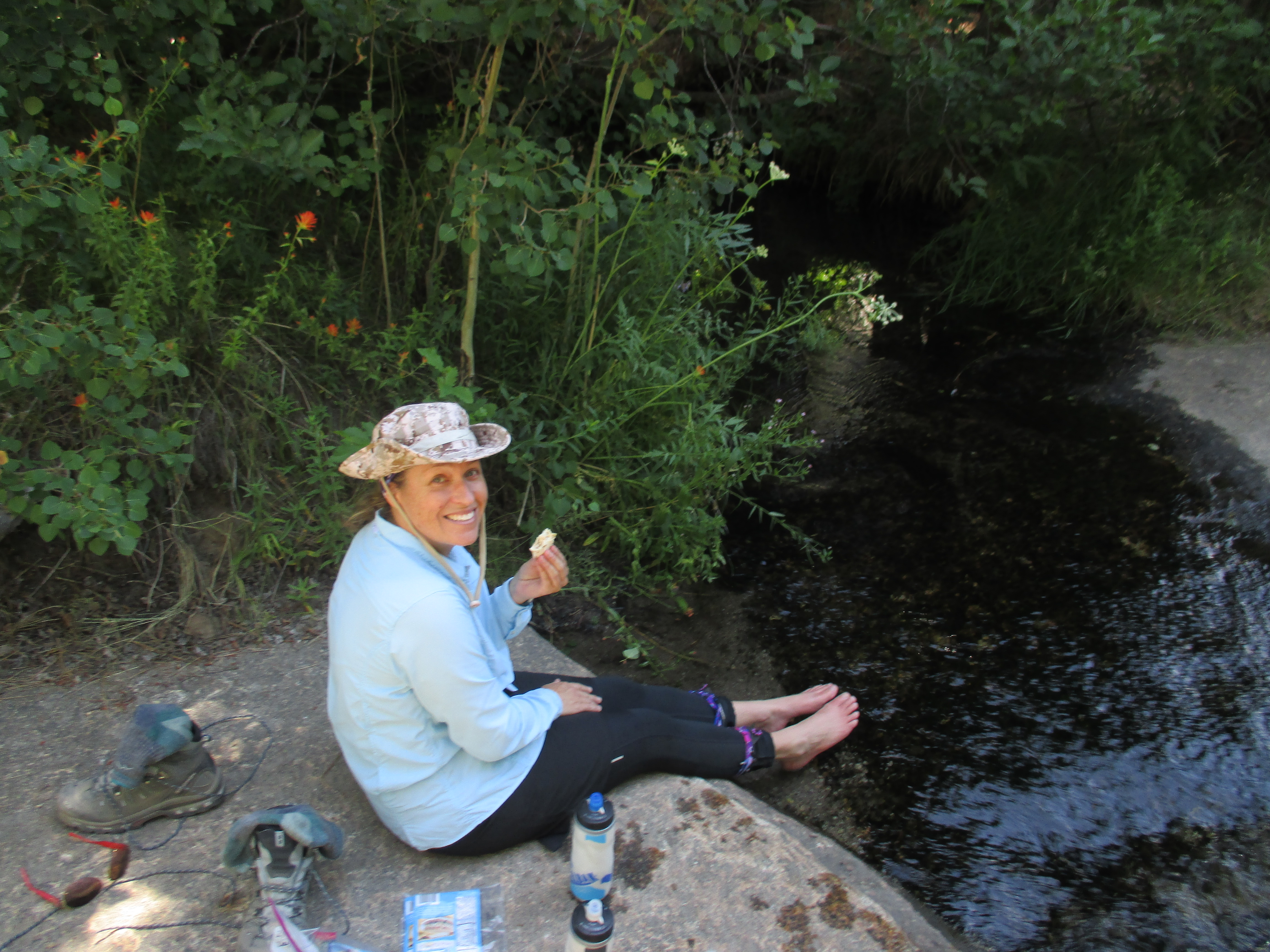 We eat lunch by a small creek and soak our feet for a bit. We are loving the weather and enjoying the amazing scenery.